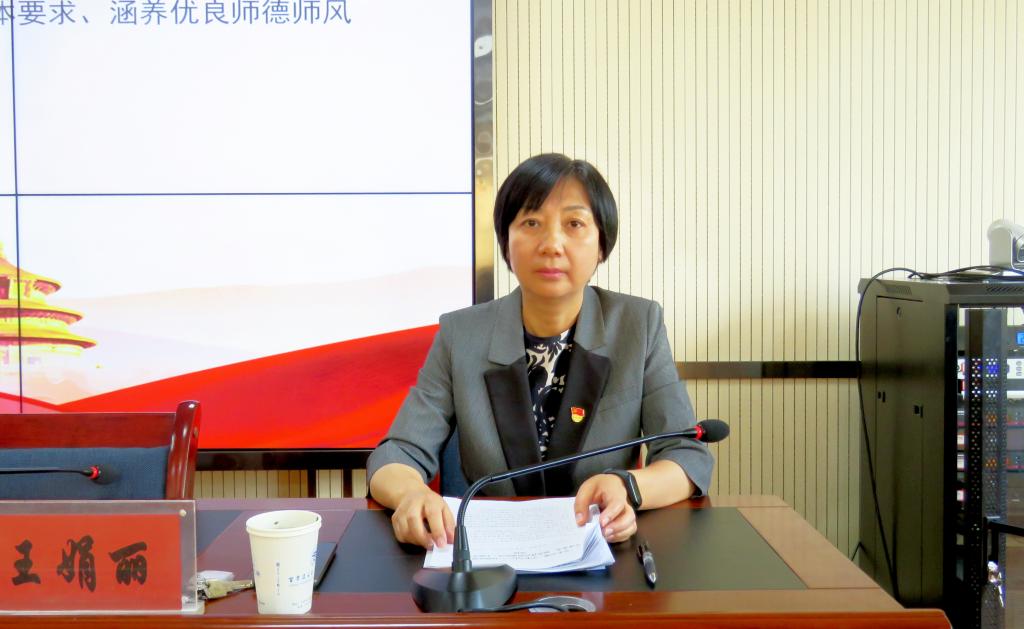 王娟丽同志在总结中表示,教师在很多人成才成人中扮演着非常重要的角色,承载着文化传承的使命,肩负着培养社会建设接班人的重任。学院广大教职员工要以德立身、以德立学、以德施教,为学院各项事业的持续发展营造出一个风清气正、干事创业的良好环境。同时也要旗帜鲜明的为新时代“培养什么样的人、如何培养人以及为谁培养人”的教育理念而持续努力奋斗。