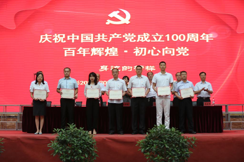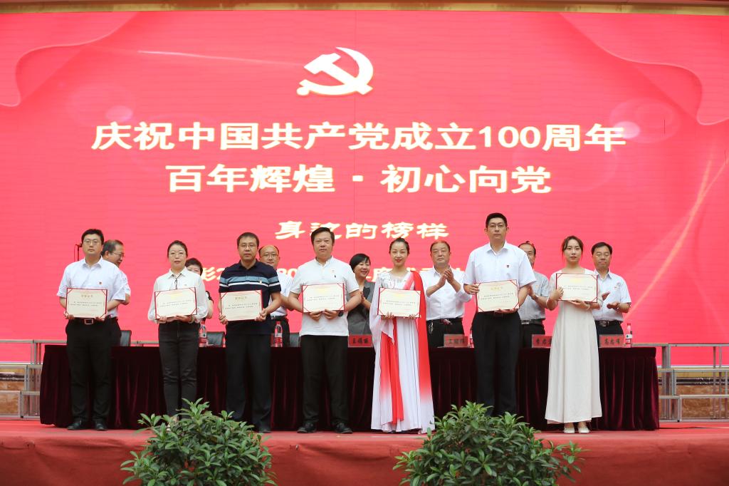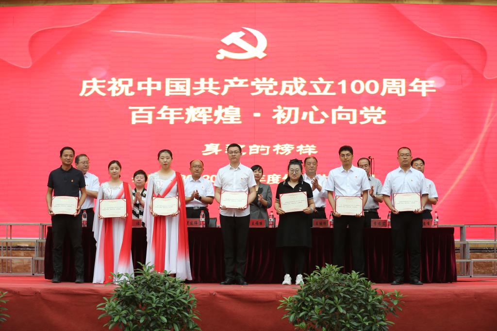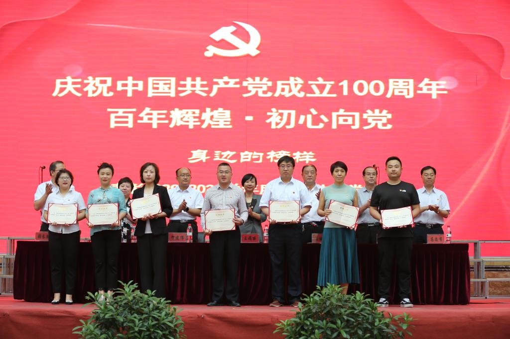 学院领导为获奖的优秀共产党员、优秀辅导员、先进党支部、样板党支部、标杆院系、标杆院系培育对象颁发了荣誉证书及奖牌。