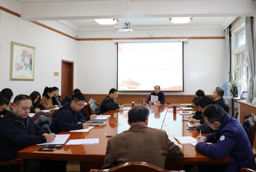 王继伟同志主持学习了王沪宁、孙春兰在第二十七次全国高校党的建设工作会议上的讲话精神。指出要深入学习贯彻习近平总书记“七一”重要讲话精神和关于加强高校党建工作的重要论述,紧扣立德树人根本任务,扎实推进高校党的建设和思想政治工作,努力培养德智体美劳全面发展的社会主义建设者和接班人。并强调一定要认真学习领会,增强“四个意识”、坚定“四个自信”、做到“两个维护”,提高政治判断力、政治领悟力、政治执行力,切实落实到高校教学、科研、管理全过程和各方面。要紧紧围绕三个方面开展各项工作,一是要着力健全高校党建工作体系,压实高校党建工作政治责任;二是推动新时代高校思想政治工作守正创新,坚持用习近平新时代中国特色社会主义思想铸魂育人;三是把疫情防控摆在突出位置,落实高校防疫条件和常态化防控措施。
